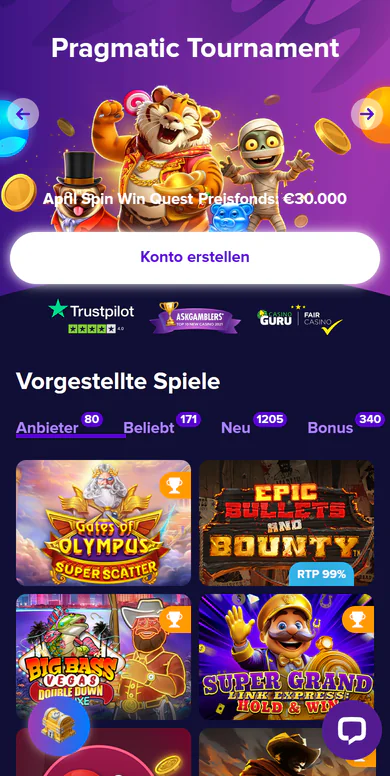 Neue Spieler profitieren von einem Willkommensbonus-Paket, das über die ersten drei Einzahlungen verteilt wird. Insgesamt winken bis zu 1.200 € Bonusguthaben und 275 Freispiele – ein überdurchschnittliches Angebot im Marktvergleich. Hinzu kommt ein No-Deposit-Bonus für Neukunden mit 10 Freispielen ohne eigene Einzahlung.
